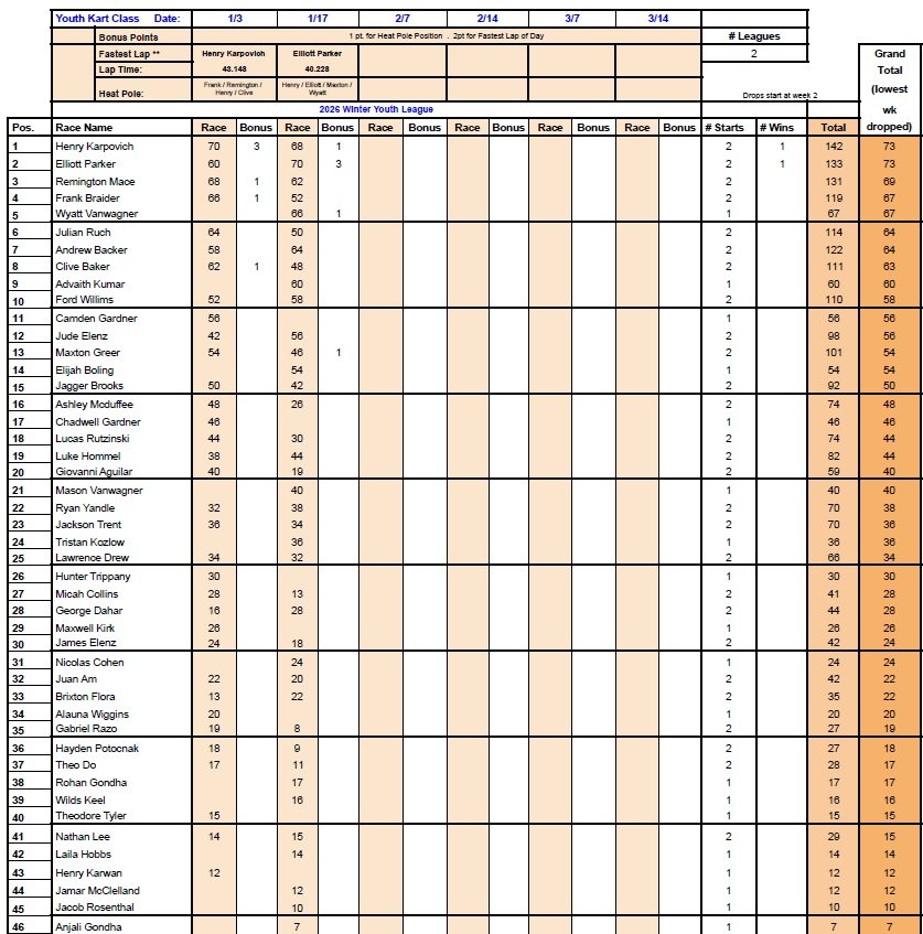 - Having completed an Adult Kart Certification Class; this can be either through a driving school, through our summer camp or being approved after competing successfully in our Youth Kart Class.